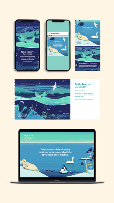• Sähköinen joulukortti yrityksen logolla yhteistyö­kumppanien muistamiseen. FIN – ENG – SVE.